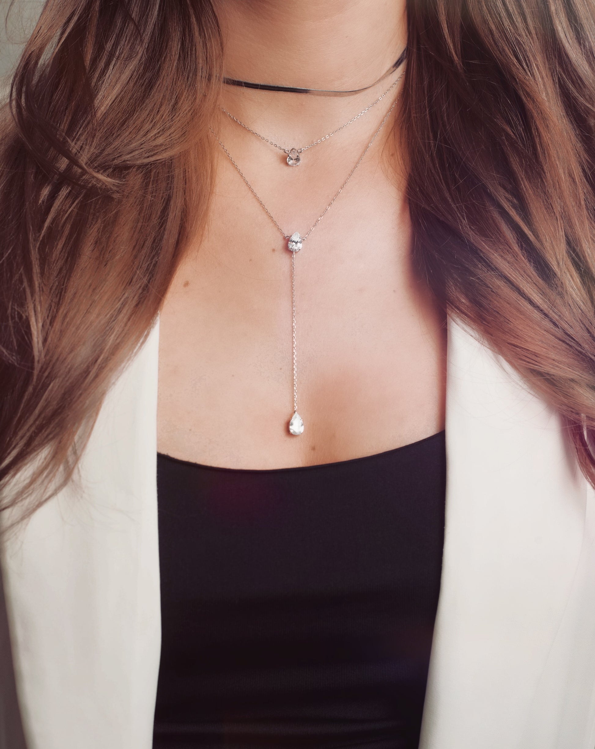 Material: 925 Sterling Silber, 5-A Zirkonia Stein, Länge 36cm und 44cm
