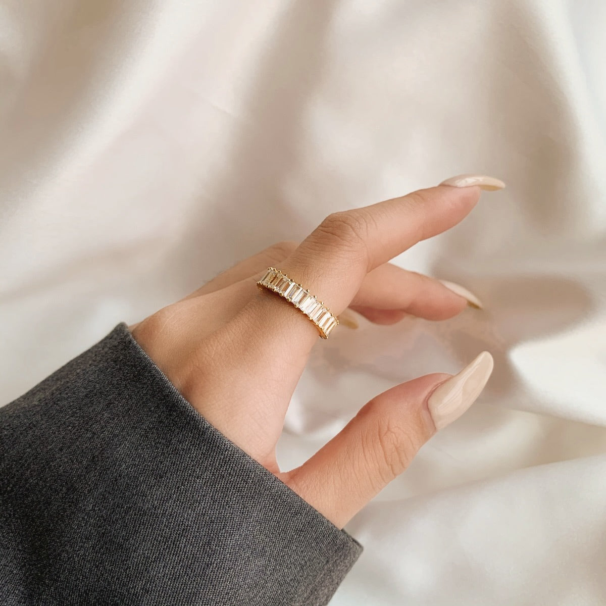 Material: 925 Sterling Silber, 18 Karat vergoldet, 5-A Zirkonia Stein, dieser Ring ist in der Größe variabel.